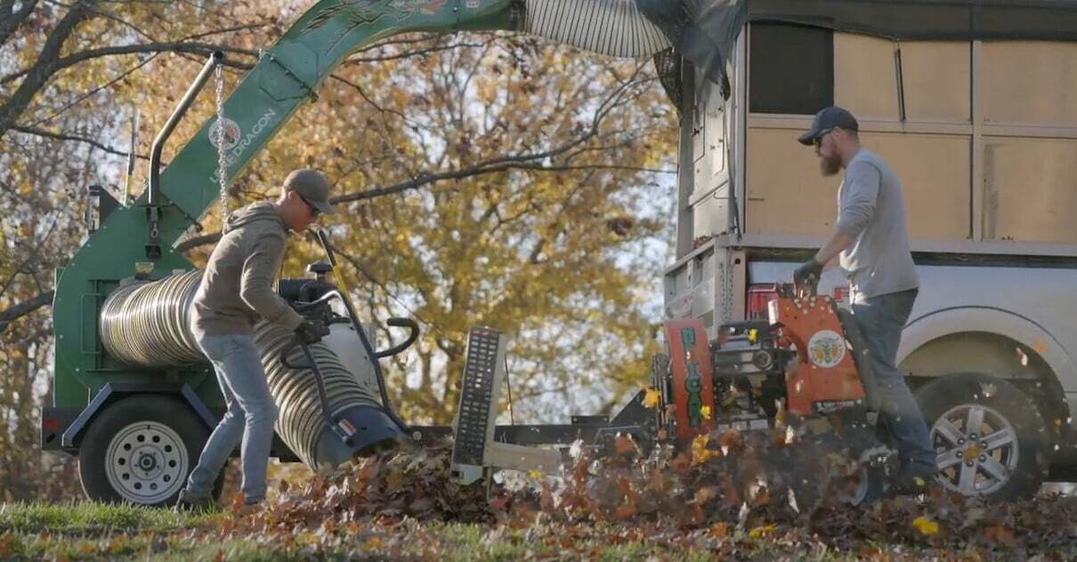 See the combined power of the Leaf Dragon™ DL3700VETR debris loader and Hurricane™ P2000 zero turn stand-on blower swiftly blow through leaf cleanup,...